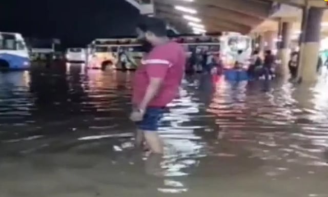 Water is stagnating at knee-deep water on the platform itself, making it challenging for passengers, said a Daily Thanthi report.