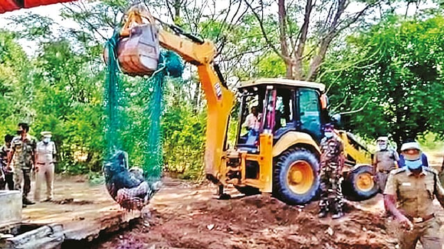 “The calf might have been a member of the herd that used to visit the farm house to consume water in the tank. Seemingly, they have come in search of the missing calf. The elephant herd was chased into the forest cover by firing crackers. Then, a portion of the tank was demolished and the carcass was taken out using machineries, “said an official of the forest department.