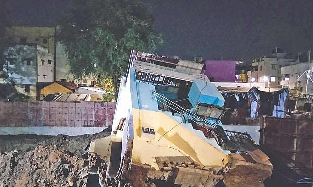 COIMBATORE: A house built along the Sanganur stream in Coimbatore collapsed on Monday night. Fortunately, the occupants of the house built allegedly on encroached land had vacated 15 days ago following a notice issued by the Corporation to carry out desilting works in the canal.