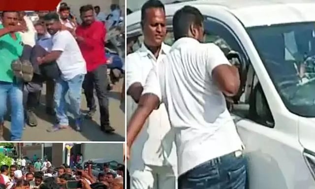 As the news about the alleged assault by the woman official spread, more number of supporters rushed to the spot and besieged the car in which the woman official travelled and one of the supporters had reportedly attacked the car in which the windshield had broken. This led to another bout of heated argument.