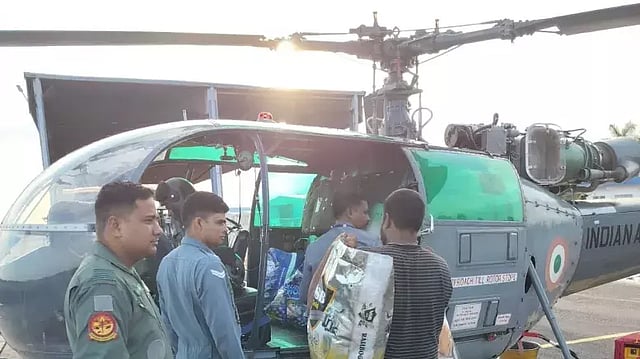 According to the IAF, two helicopters were sent in the evening with relief supplies that included food packets and rations for people stranded in cyclone-hit areas in Chennai that were cut off due to flooding.