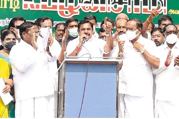 In his address, former chief minister Palaniswami said that the DMK government was focused on foisting cases against the former AIADMK ministers and not keen on addressing public issues. “False cases were foisted on AIADMK leaders unable to challenge us directly. We will not be cowed down by such threats and face the cases legally,” he said. Claiming that the DMK government may end in two years, if the Prime Minister’s vision of ‘one nation, one election’ is implemented in 2024, Palaniswami said “AIADMK knows how to give a befitting reply to the vendetta politics of DMK.”