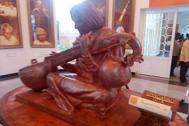 According to sources, Saleem, kin of the late Dr APJ Abdul Kalam, placed The Bible and The Quran near the wooden Kalam statue in an attempt to set the political controversy surrounding the replica of Bhagavad Gita at rest. Hours later, suddenly, the holy books were removed from near the statue and kept in a glass box.