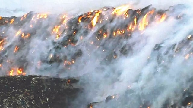 On Sunday, there was a sudden fire with heavy wind fuelling the fire and spread across the entire mound. Residents of the locality passed on the information to the civic officials who alerted the fire personnel.