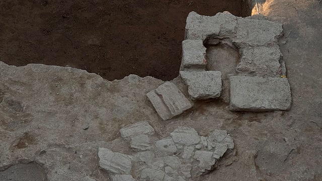 The structure was found at a depth of about 3.5 feet in one of the trenches, which appeared to have been built using bricks of varying sizes.