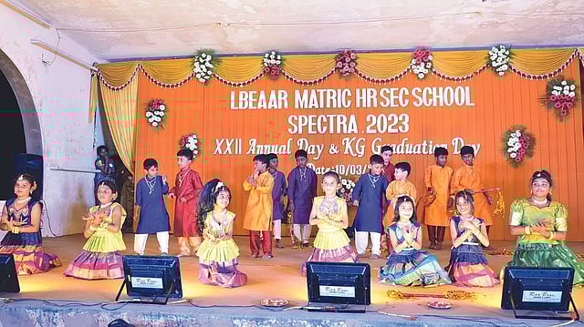 Chennai: The 22nd Annual Day celebration of LBEAAR Matric Higher Secondary School, Nerkundram, was held recently. S Narayanan was the chief guest. The stage rocked with colours and rhythm of Bharatnatyam and the trending Naatu Naatu song. Children from primary & kindergarten classes stole the hearts of everyone with their action song. Bindu Ajith, principal, congratulated toppers of Classes 10 and 12 in her annual report. The chief guest distributed certificates to students and delivered the graduation day address. The event was presided over by RA Madanagopal, chairman, V Kishorenath, secretary, P Dasarathan, treasurer and B Sudarsana Raghavan, trustee of LB Ramanujalu Charitable Trust.