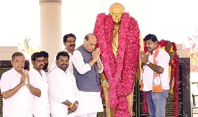 Additionally, Union Minister Rajnath Singh garlanded the statue of Dr B Sivanthi Aditanar in the Veerapandiyanpattinam memorial hall in Tiruchendur.