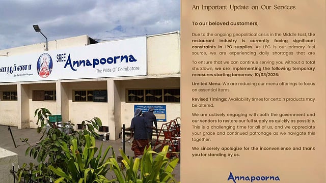 CHENNAI: The renowned Annapoorna restaurant chain in Coimbatore has placed notices at its branches announcing that it will temporarily limit its menu due to a lack of commercial LPG cylinders.