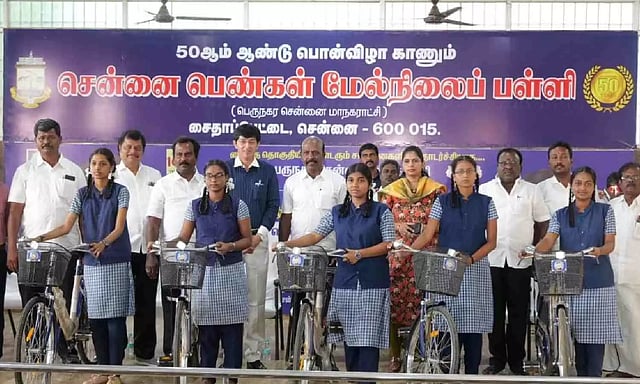 A total of 31,507 students are studying in 35 higher secondary schools under the Greater Chennai Corporation, of which 5,188 students are studying in class 11th in the academic year 2022-2023 and will be given bicycles. A total of 291 students from Chennai Girls Higher Secondary School were given bicycles and 241 students from Chennai Boys Higher Secondary School were given bicycles. At least 75 students from the Chennai High School in West Mambalam were also given bicycles.