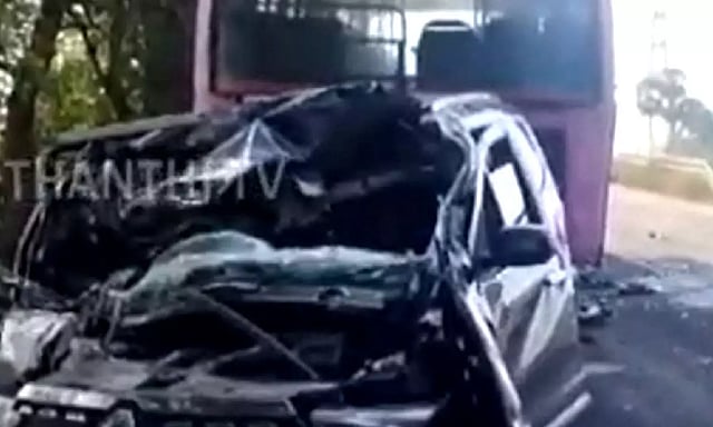CHENNAI: Tragedy struck in Madurai's Thirumangalam on Friday when a collision between a car and a government bus killed three people from the same family, including a two-year-old child.