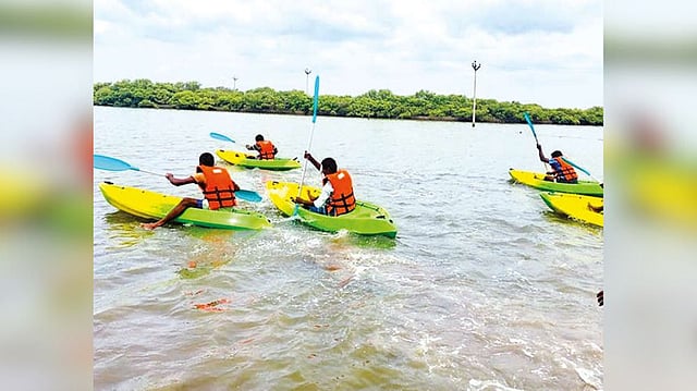 As per the directive from Ramanathapuram Wildlife Warden Bakan Jagdish Sudhakar, safety precautions were put in place and those involved in boating and kayaking were strictly urged to wear lifejackets. The boating covers a distance of about two to three kilometers through the sea with mangrove colonies.