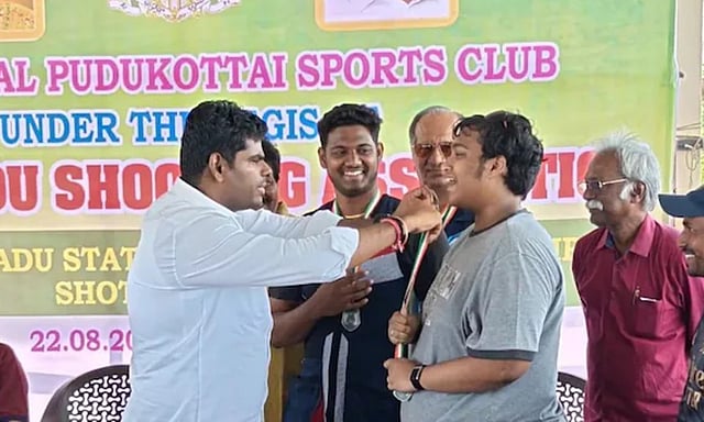 CHENNAI: Suryaa Raaja Baalu, son of Tamil Nadu Industries Minister TRB Rajaa, drew attention at the 51st State Shooting Games when he declined to let former BJP state president K Annamalai place a medal around his neck, choosing instead to receive it by hand.