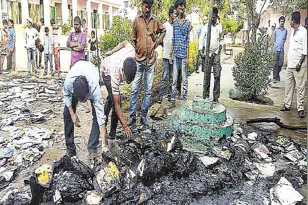 In the fire, scores of transfer certificates (TC), answer scripts, the attendance registers of both students and teachers, UPS and computers were burnt to ashes. Soon, parents gathered at the school to search for certificates.