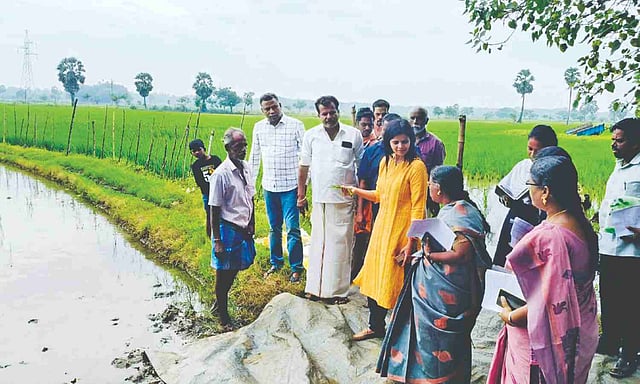 B Gayathri Krishnan, the monitoring officer for Tiruvarur visited Thirumeeyachur and Keeranur villages in Nannilam taluk where the crops were said to be damaged due to the heavy rainfall.