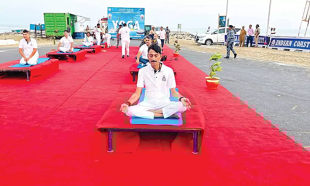 CHENNAI: On International Day of Yoga, Minister of State for Defence Sanjay Seth participated in a ‘Special Yoga Session’ organised by the Indian Coast Guard (ICG) at Dhanushkodi, the southernmost tip of Rameswaram Island in Tamil Nadu, on Friday.