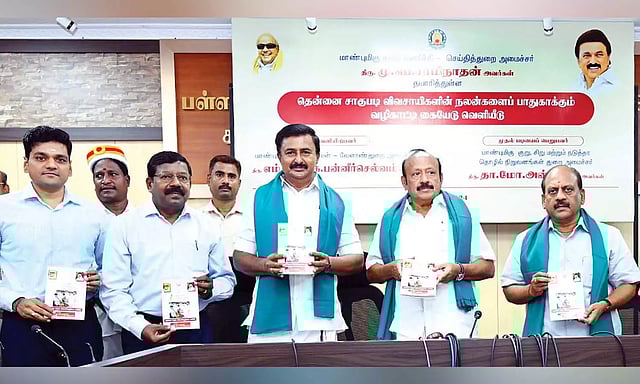 CHENNAI: State Minister for Information and Publicity MP Saminathan's handbook for the welfare of Coconut farmers was released by State minister for Agriculture and Farmers' Welfare MRK Panneerselvam on Friday.