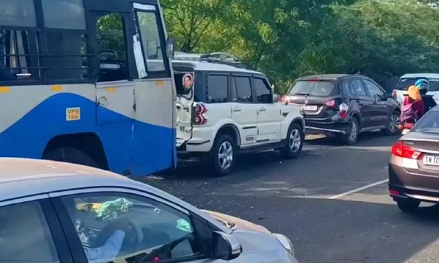 CHENNAI: A multi-vehicle collision near the Paranur Toll Plaza in Chengalpattu district involving a government bus and several cars led to a massive traffic jam on Sunday.