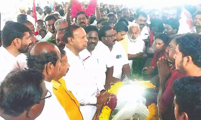 CPI national secretary Narayanan, state unit secretary R Mutharasan, DMK treasurer TR Baalu and various other leaders took part in the last rites. They spoke about the late CPI leader at the condolence meeting.