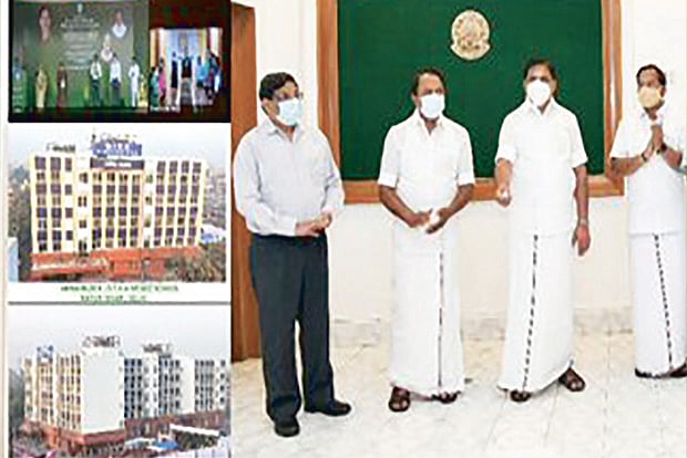 The new school building named after late Chief Minister J Jayalalithaa, which was inaugurated through video conferencing had been constructed at 6,515 square meters with a ground and four floors.
