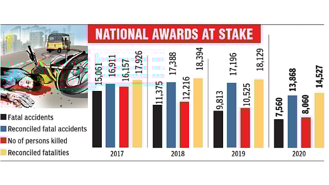 CHENNAI: After winning the award for the best-performing State in terms of road safety in 2018 and 2019, the reconciliation of the data on road accidents during 2017-2020 period has found 22,018 additional fatalities in the four years.