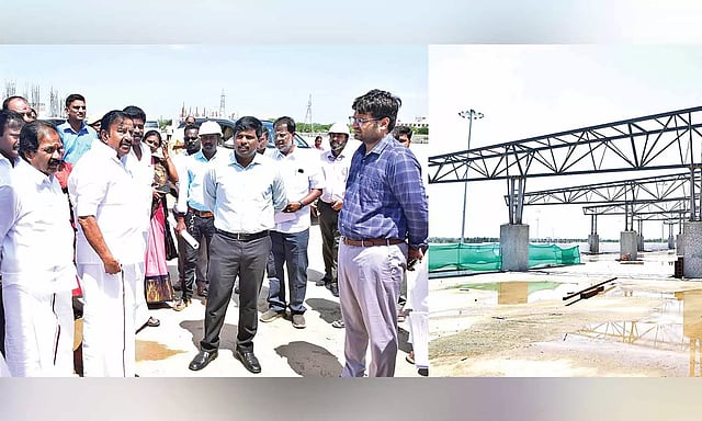 Inspecting the ongoing construction works for the IBT at Panchapur in Tiruchy, Nehru said, the contractors for the bus stand have been instructed to complete the work on time.