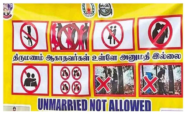 CHENNAI: A banner placed at the entrance of a park in Hosur said that unmarried men and women would not be allowed inside.