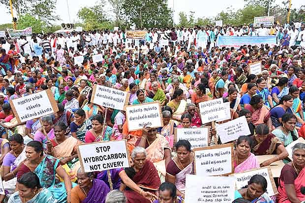 Over 2000 people, including around 800 women, converged at the TANTEX roundabout in Thanjavur town and rallied to the District Collectorate, located around 2.5 km away, holding placards. The participants raised slogans in support of their demands. They demanded the withdrawal of the hydrocarbon projects from the Cauvery delta as they said it would turn the region into a desert. They also asked the government to declare the Cauvery delta as an agricultural protected zone.