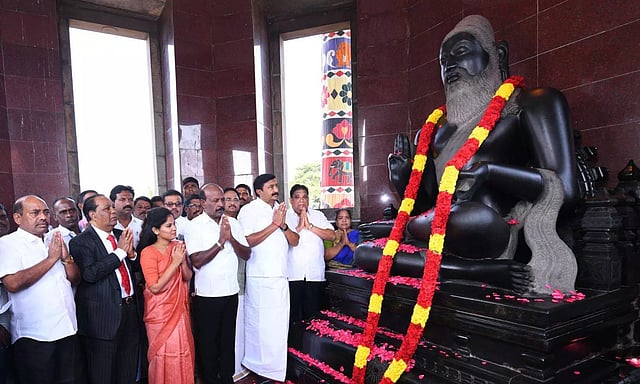 Governor R N Ravi set the tone for the fresh face-off when he described Thiruvalluvar as “the brightest saint of the Bharatiya Sanatan tradition” in his Thiruvalluvar Day message posted on the official handle of the Raj Bhavan of Tamil Nadu. The Governor’s message also had a representative image of Thiruvallur where he was seen sporting saffron, instead of the usual white seen in the ‘official’ image of the Tamil Nadu government, and also ‘Rudhraksh’ and “Vibuthi” (Holy ashes on the forehead and biceps).