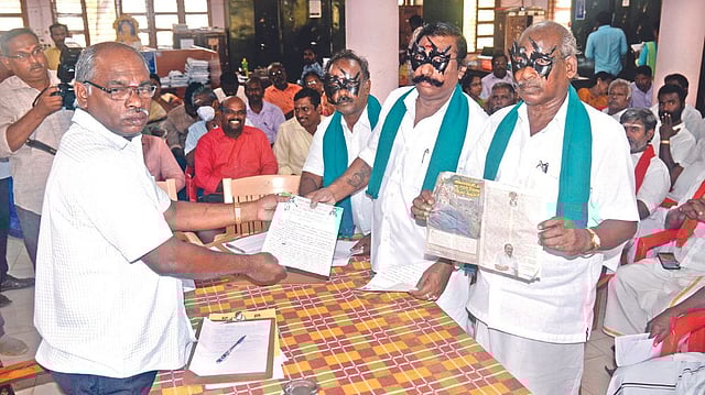 The Thanjavur taluk level farmers’ grievance meet was held at the RDO office that was chaired by the RDO (in charge) K Palanivel. A group of farmers, who were wearing masks, raised slogans against the DPC staff and they told the RDO that the samba procurement is in full swing across the region but the staff demand a bribe of Rs 50 per bag of paddy.
