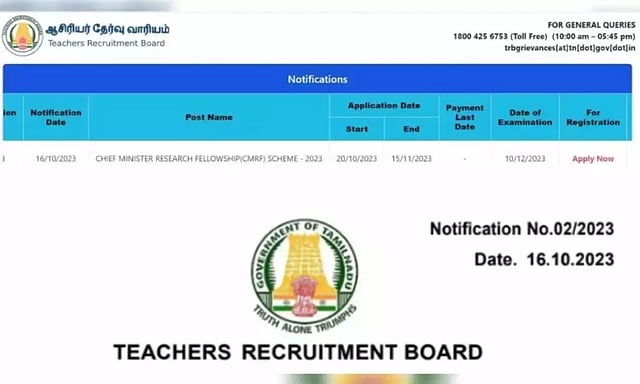 CHENNAI: For the candidates applying for the Chief Minister's Research Fellowship (CMRF), the deadline has been announced as November 15 till 5 pm.