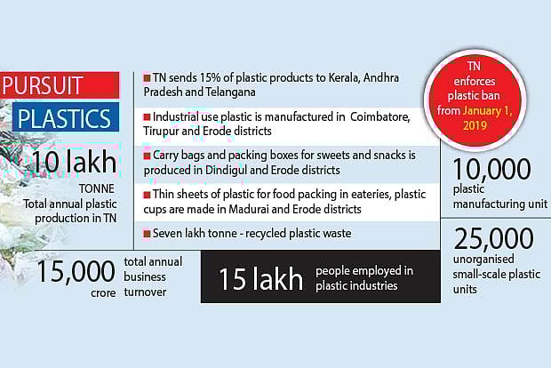 Plastic manufacturers have already commenced on the groundwork by visiting other states to identify lands for setting up production units. “A cluster of units will come together to form an industrial estate and continue with our production of plastic. Plastic manufacturing units in Coimbatore and neighbouring districts have favoured moving over to Kanjikode Industrial Estate in Kerala, while those in Chennai are keen on shifting to Andhra Pradesh and Telangana,” he added.