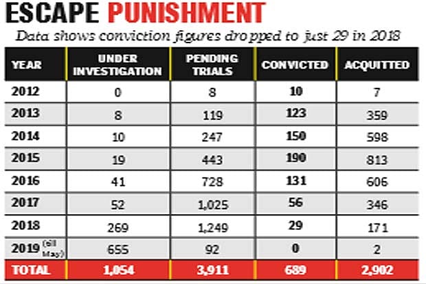 Similarly, acquittals were also high in 2015 with 813 cases. They came down to 606 in 2016 and 346 in 2017.