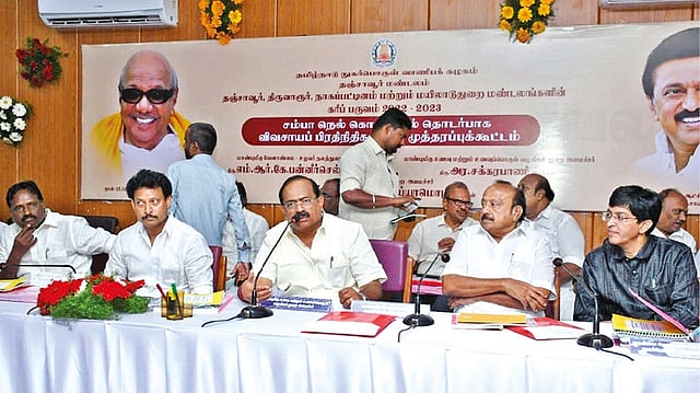 Minister Anbil Mahesh Poyyamozhi, Collectors from Thanjavur, Tiruvarur, Mayiladuthurai and Nagapattinam, farmers from various districts took part in the meeting.