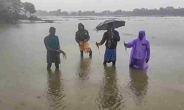 Crops were submerged partially and completely at several places, including those in and around Tiruvarur, Thiruthuraipoondi, Muthupettai, Mayiladuthurai, and Vedaranyam, and according to farmers' rough estimates, crops on at least 2,000 acres were affected.