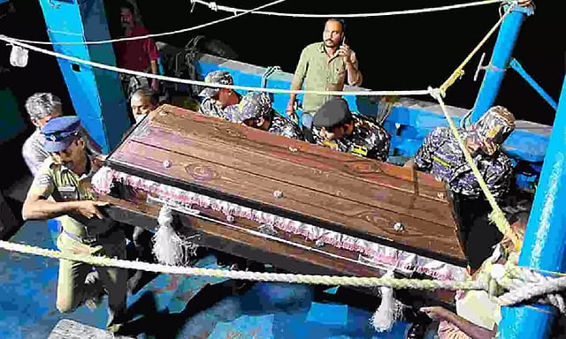 Indian Navy ship, INS Bitra, which was on deployment off Rameshwaram coordinated with a Sri Lankan Navy ship and received the fishermen and the dead body at sea.