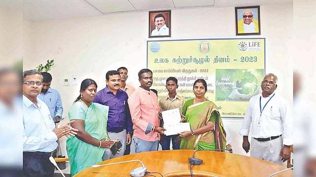 RANIPET: Two social activists involved in greening the environment and both natives of Kalavai taluk were awarded the Tamil Nadu Pollution Control Board’s green champion awards for 2023 by Collector S Valarmathi at the Collectorate on Monday.