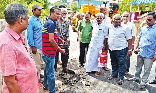 Since the road work was stopped by residents, the person in-charge passed on the information to the civic administration. Subsequently, Assistant Engineer Karthikeyan rushed to the spot and held talks with the agitating residents, who demanded to remove the tar from the entire stretch and relay the road after milling the stretch as per specifications.