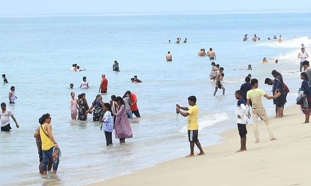 According to a Daily Thanthi report, many tourists who visited Dhanushkodi during the recent long weekend were spotted swimming in the sea.
