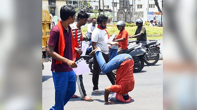 SALEM: A social activist who attempted to submit a petition by performing somersaults near the Salem Collectorate was stopped and warned by police on Monday.