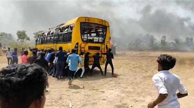 CHENNAI: Protest against a school in Kallakurichi following the suicide of a Class 12 girl turned violent on Sunday after agitators set fire on school building and school buses.