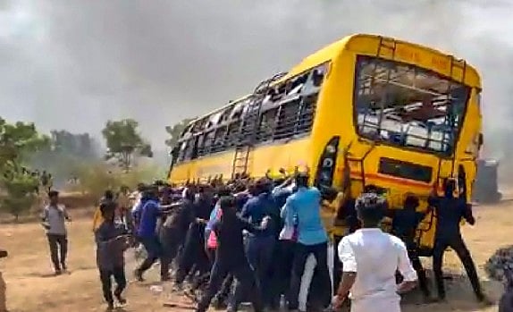 The protesters entered the private school and vandalised the property and torched school buses after a Class 12 girl student of the school was found dead at the hostel.