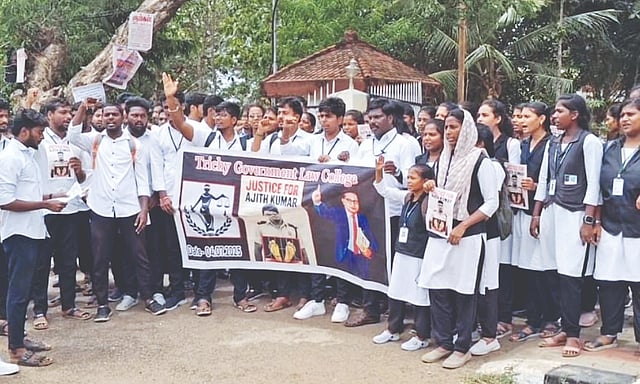 While a series of protests are going on against the custodial death of Ajith Kumar at Tirubuvanam in Sivagangai district, the students from Government Law College, Tiruchy staged a protest demanding fitting punishment to the persons involved in the offence.