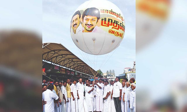 Earlier, the minister launched the flying of a giant balloon to welcome the Chief Minister in Thanjavur.
