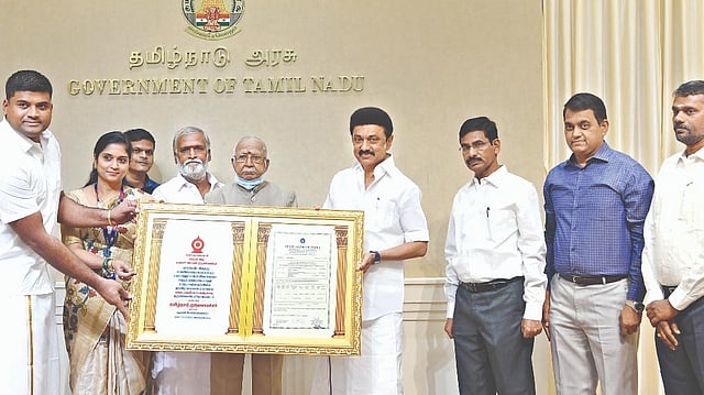CHENNAI: Tamil Nadu Chief Minister MK Stalin on Thursday handed over a gold deposit bond worth Rs 46.31 crore, obtained from melting gold jewels deposited in Bavani Amman temple in Periyapalayam in Tiruvallur district, to authorities of the temple.