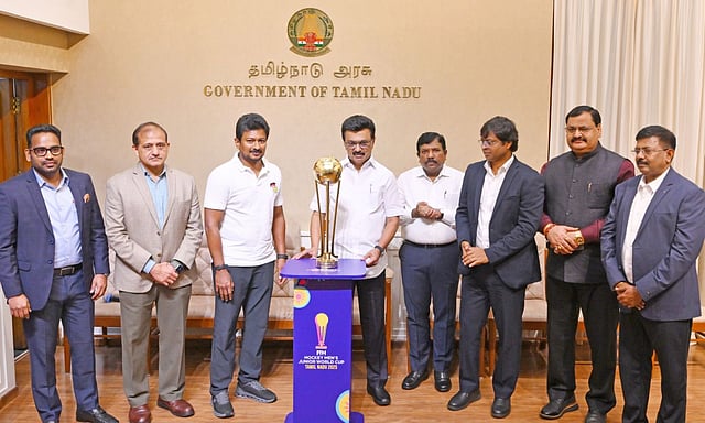 CHENNAI: As Tamil Nadu gears up to host the 14th Men's Junior Hockey World Cup, Chief Minister MK Stalin, on Wednesday, unveiled the trophy for the tournament. Deputy Chief Minister and Minister for Sports Development Udhayanidhi Stalin was present at the event.