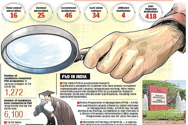 Even as the number of scholars enrolling for Ph D thesis in Tamil Nadu as well as rest of India has been on the rise every year, the quality of research and their outcome have become questionable of late. According to UGC records, the enrolment in PhDs has jumped by 50 percent between 2011 and 2017 across the country.
