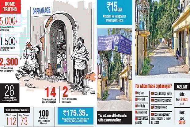 The State-run orphanages, which were established under the Sathya Ammaiyar Ninaivu Government Orphanages Scheme, falls under the Social Welfare and Nutritious Meal Programme Department and aims at providing accommodation and other basic amenities, including education, uniform, free textbooks, medical facilities and bedding for children. These orphanages provide a home to orphans, deserted, destitute and abandoned children including kids without parents or with a single parent. The children of ailing parents, prisoners, and of parents whose annual income is not more than Rs 12,000 are eligible to be admitted to these orphanages. However, the scheme regulates that only girls between five and 21 years of age and boys up to Class-5 will be given admission to these facilities.