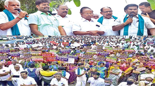 COIMBATORE: More than 1,500 farmers staged a demonstration in Pollachi near Coimbatore on Tuesday demanding the state to stop implementing a combined drinking water scheme for Oddanchatram in Dindugul by taking water from Aliyar Dam.