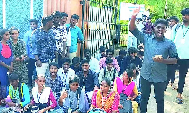 TIRUCHY: Students from Kumbakonam Government Arts College staged a protest on Monday against a professor for abusing female students with their caste and demanded action against the professor.