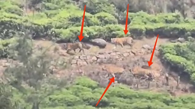 COIMBATORE: In a rare sighting, four tigers were spotted in a tea estate near Mynala village on the forest fringes of Ooty on Friday, triggering panic among estate workers.